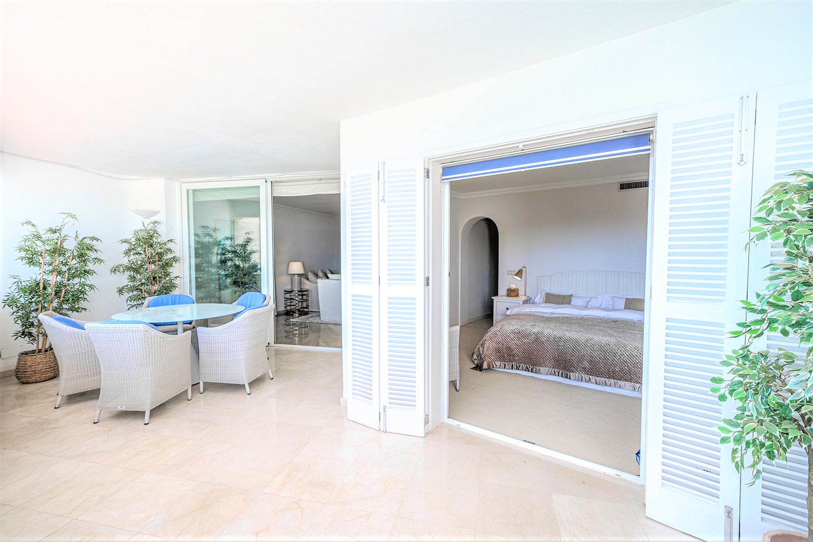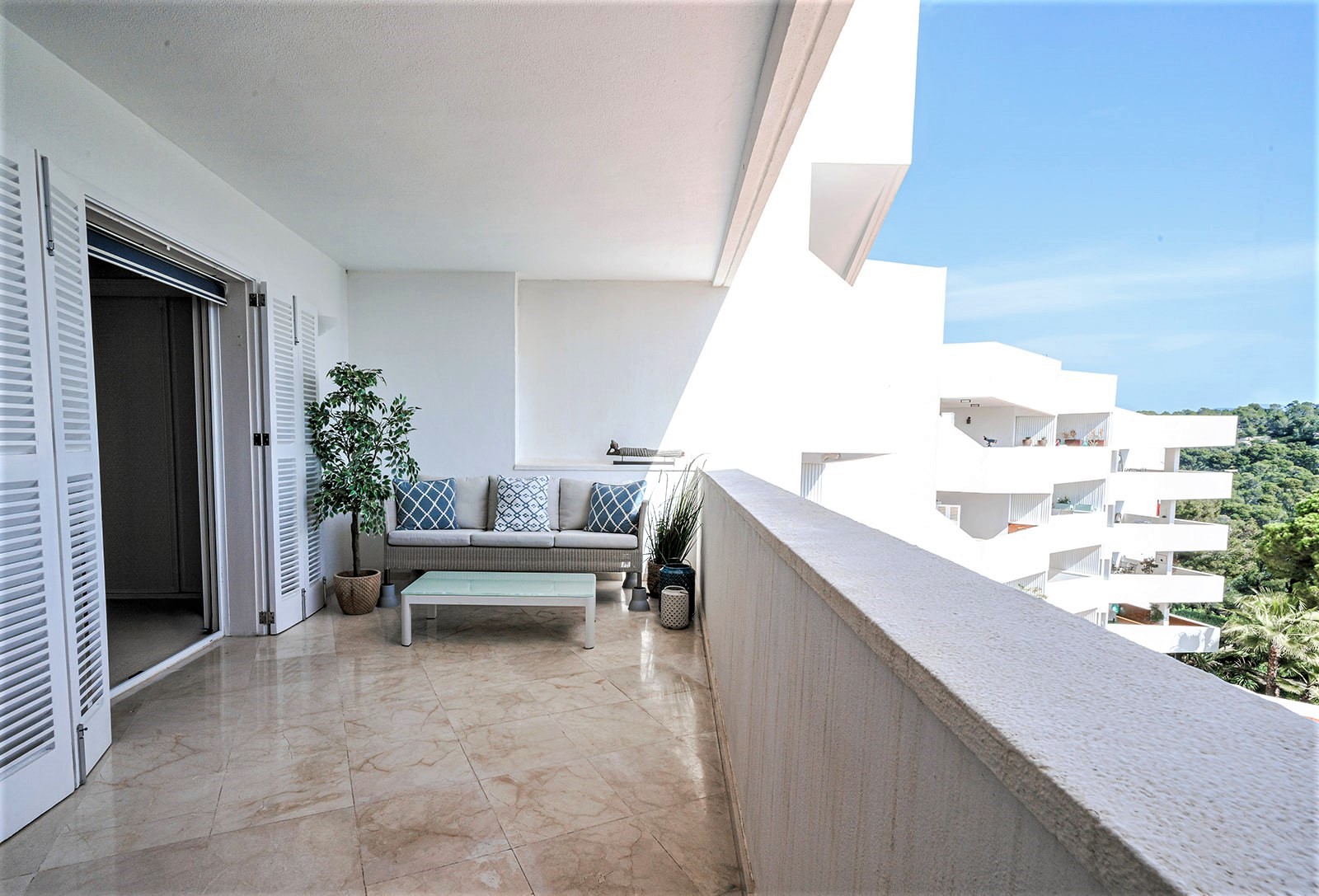 Ausserdem gibt es noch ein Schlafzimmer mit Bad ensuite, was früher für die Angestellten gedacht war. Über einen kleinen Flur gelangt man in den Schlafbereich mit einem Masterbedroom, Bad ensuite und Zutritt zur Terrasse, sowie zwei weitere Schlafzimmer und ein Badezimmer. Das Objekt ist im Gebäudekomplex „Los Cypresses“, der über einen Tag- und Nachthausmeisterdienst verfügt, absolut ruhig gelegen ist und über eine wunderschöne Grünanlage inklusive großem Gemeinschaftspool und Sauna verfügt. Tiefgaragenstellplatz und ein Keller gehören selbstverständlich ebenfalls zur Wohnung. Der Blick von der Terrasse ist sensationell und lässt ein Gefühl des „Ankommens“ aufkommen. Auch am Abend hat man den beeindruckenden Blick auf das Lichtermeer und die wunderschöne beleuchtete Kathedrale. Im Kaufpreis sind die Möbel enthalten. 895.000€.