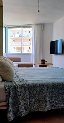 Studio auf 27m2, Wohn – Essberereich und Schlafraum, 1 Bad mit Dusche ,modernster Wohnkomfort mit Einbauschrank , moderner Küche , AC,Lift , Meerblick. Cala Major – nur 5 min nach Palma und an der Küste gelegen mit netten Lokalen, Geschäfte , Schule , Fitness und einen herrlichen langen Sandstrand . Parkplatz wäre möglich. Der Cala Mayor Strand ist ein feiner Sandstrand, der sich 200 Meter lang und 80 Meter breit erstreckt. Auf beiden Seiten befinden sich Felsvorsprünge, und das Wasser ist normalerweise sehr klar und ruhig. Sonnenliegen und Sonnenschirme, Duschen und Toiletten, Rollstuhl- und Buggy-Rampen machen ihn zu einem bequemen Strand in der Nähe von Palma für Familien. Er ist vonden besten Hotels in Cala Mayor umgeben und liegt in der Nähe von Geschäften und Restaurants.