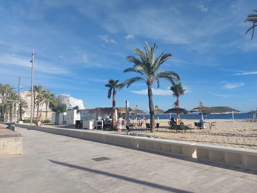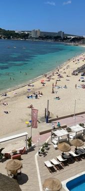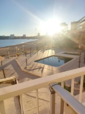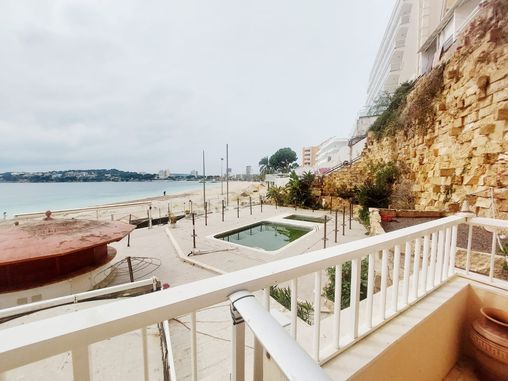 Herrliches renoviertes Apartment mit der Gesamtgrösse von 48m2 in erster Linie mit Blicküber die ganze Bucht.Die Wohnung auf 42m2 befindet sich auf dem Strandabschnitt zwischen Palmanova und Magaluf. Die Wohnung mit offener Küche, große Schiebefenster , AC,Terrasse, 1 Schlafzimmer , Bad , Einbauschrank ist hell und sonnig . Zum Haus gehört ein Pool und ein öffentlicherr Parkplatz. Gemeinschafskosten 227€ für 2 Monate. Schöne Promenate und gute Lokale , Beachclubs , 3 Strände direkt fussläufig an der Wohnung.