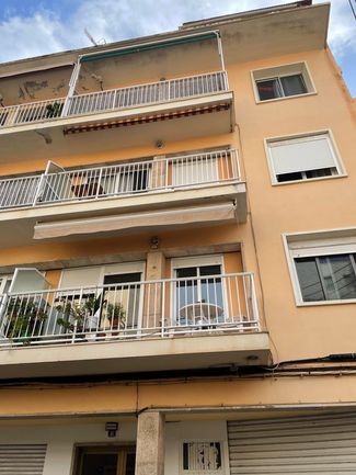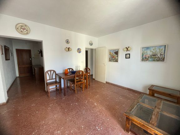 Apartment in a small community with balcony and side sea view, 80m2, 2 bedrooms (including 1 double bedroom), gallery with laundry room, Cimalit windows, heating, air conditioning for installation. Bathroom and kitchen need renovation. The flat is only 200m from the beach at Cala Estamcia. The building has already passed the ITE and the renovation of the side building has already been approved and paid for. Work will commence shortly.