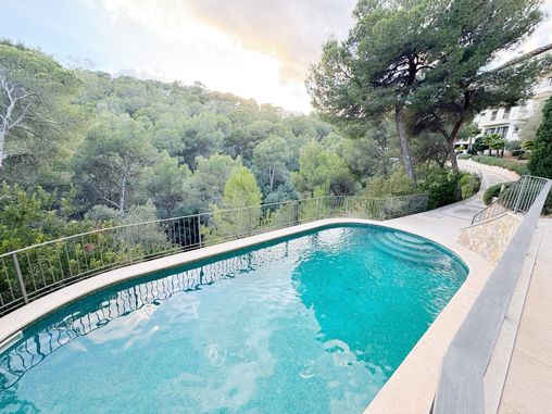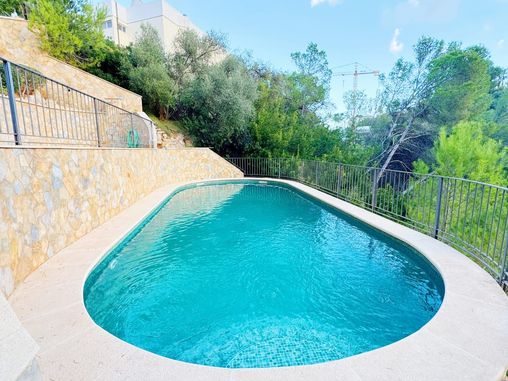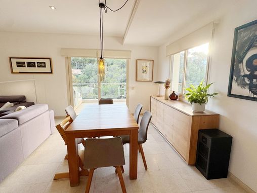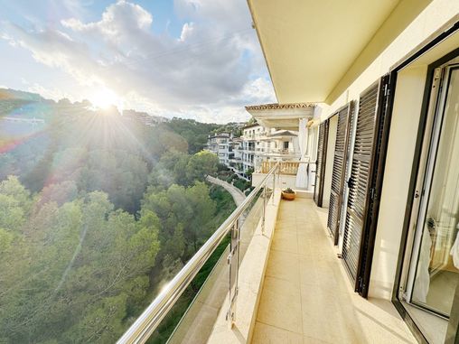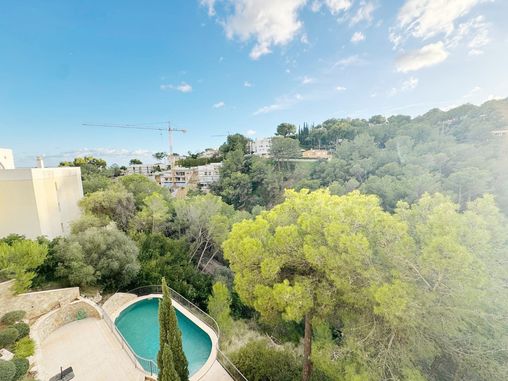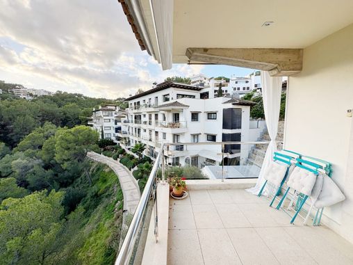 Cas Catala, this luxury complex with pool is located in the very popular, privileged residential area of Cas Catala. The apartment covers 150m² and offers an elegant combination of modern amenities and exclusive furnishings. A particular highlight is the private terrace, which offers plenty of space for relaxing hours in the open air. The apartment comprises four spacious double bedrooms, ideal for families or guests. Two stylish bathrooms, including one en-suite, create a pleasant feel-good atmosphere. There is a separate toilet, a fitted kitchen and an open-plan living area with a separate dining area. The large windows create a beautiful, bright atmosphere. Underfloor heating and air conditioning in all rooms and fitted wardrobes in the bedrooms. Communal facilities with 2 pools and garden area with access to the underground car park with storage room. Here you can enjoy the peace and quiet and the proximity to Palma, golf courses and picturesque beaches.