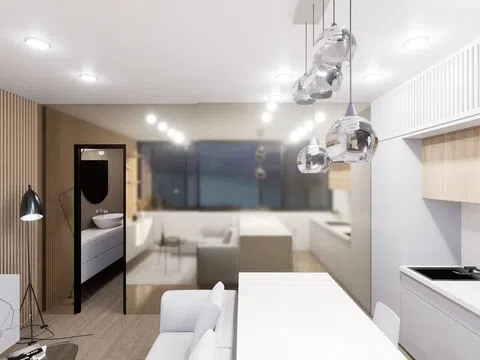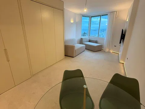 Este moderno apartamento recién renovado, con hermosas vistas al mar y una superficie de 43 m², se encuentra en la quinta planta de un edificio con ascensor y ofrece unas impresionantes vistas panorámicas al mar.