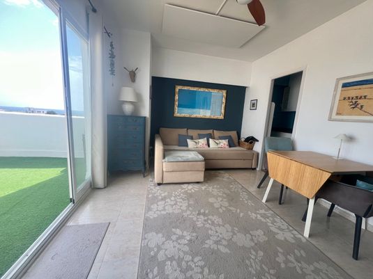 Descubra este ático de ensueño que le ofrece unas vistas espectaculares sobre toda la bahía hasta la Catedral de Palma. Con una superficie habitable de 46 m² y una soleada terraza de 12 m², este piso es el refugio perfecto. A sólo 100 metros de la larga playa de arena, podrá disfrutar plenamente del estilo de vida mediterráneo.