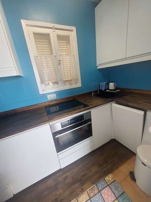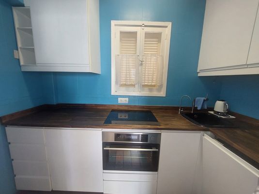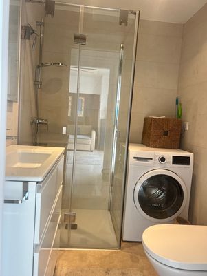 El dormitorio está amueblado con una cama doble y un gran armario y ofrece un agradable confort gracias al aire acondicionado. El baño está equipado con ducha y lavadora con secadora.