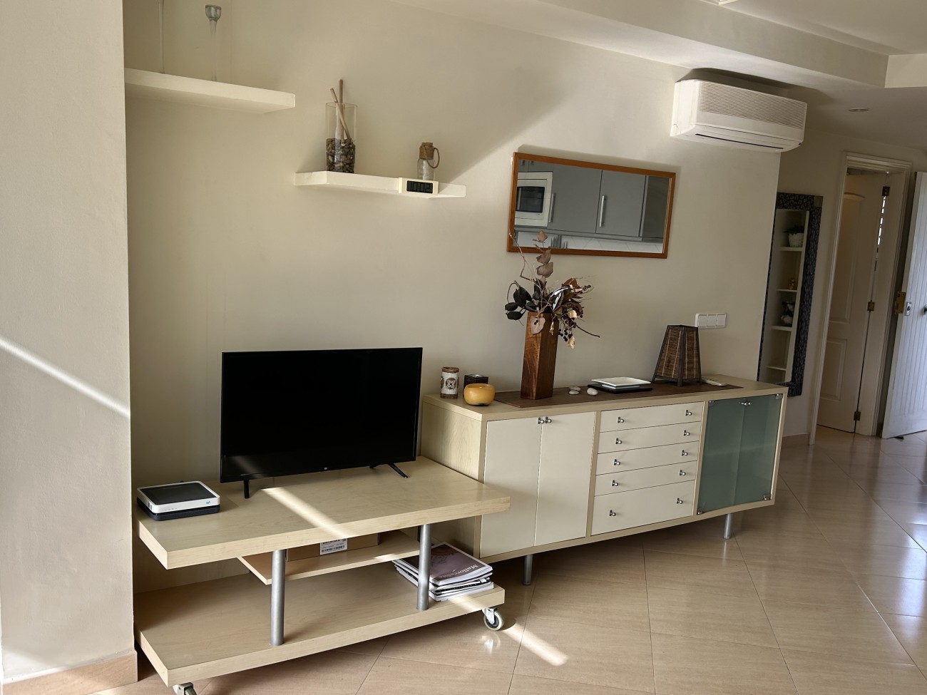 Portals Nous, apartamento magníficamente cuidado de 74 m², amueblado de forma moderna, con 2 dormitorios y 1 baño. Bonita zona de estar abierta, vistas al mar, soleado, terraza integrada y abatible, aire acondicionado y ascensor.